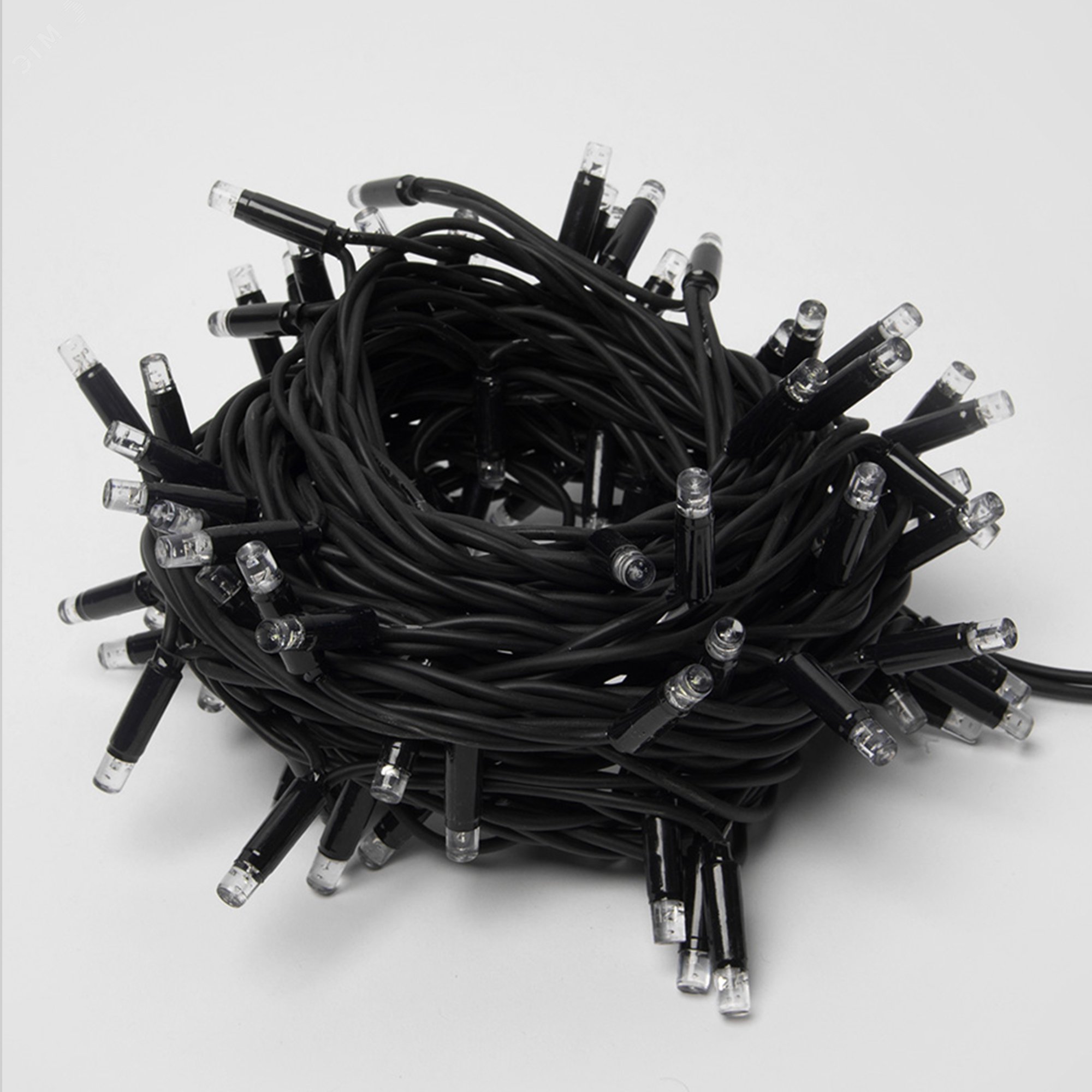 Светодиодная гирлянда с контроллером. Гирлянда с белым свечением, преобразит в любое время года коттеджи, магазины, офисы, спортивные центры, а также привлечет внимание к витринам магазинов. Гирлянда светодиодная с черным проводом незаменима для декоративной подсветки и украшения интерьера, легко монтируется. Температурный режим работы от -30 до +35 градусов С, степень защиты IP 67, предназначена для использования в помещениях и на улице. Размеры светодиодной гирлянды составляют 10 метров в длину, общее количество светодиодов 120 шт. Благодаря использованию светодиодов общей мощностью 5 Вт, ее отличительной особенностью является превосходная яркость и низкое энергопотребление. Входное напряжение для подключения 180-220 В через сетевой кабель длиной 1,5 метра. Срок службы составляет 50000 часов. Гарантия производителя 12 месяцев. Поставляется в картонной упаковке.