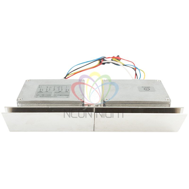 Модель iMLamp4D_AC_7000 с дискретным изменением яркости для работы с Белт-Лайтом на светодиодных лампах или индуктивной нагрузкой. В контроллерах применяется специальная прошивка микропроцессора, которая позволяет светодиодным лампам отработать в соответствии с положенным сроком службы, заявленным изготовителем.Контроллер выполнен в алюминиевом влагозащищенном корпусе с фланцами для крепления и дополнительным радиатором. Управление контроллером осуществляется с радиопульта. Максимальное расстояние приема сигнала с пульта до датчика 10 м прямой видимости.В приборе используется оптронная развязка, т. е. цепи питания и нагрузки гальванически развязаны, что значительно увеличивает устойчивость изделия к воздействию внешних помех. Предназначен для уличного применения. В случае выхода из строя основных каналов, есть возможность переключиться на 4 резервных канала.