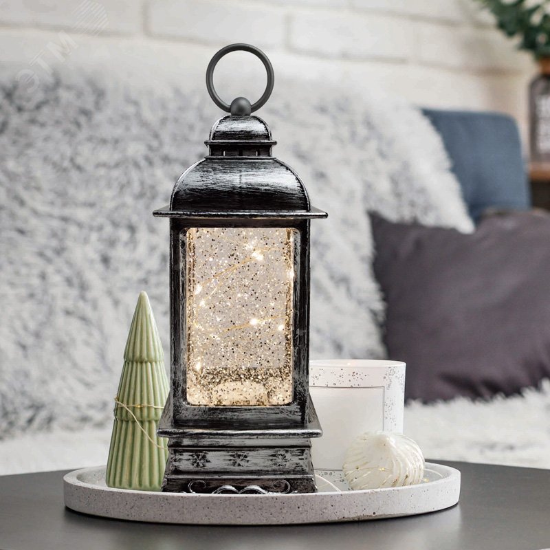 Декоративный светильник ''Сияние'' высотой 24 см выполнен в цвете серый металлик с эффектом состаренной поверхности. Прозрачная колба, наполненная специальной жидкостью, подсвечивается 18 диодами, которые излучают приятный белый свет теплого оттенка. Серебристое конфетти наполняет светильник великолепным сиянием, заставляющим подолгу наблюдать за причудливой игрой мерцающих частиц. Изделие получает питание от 4 батареек типа ААА, что делает его мобильным и абсолютно безопасным. В комплект входит USB-кабель, позволяющий подключить фонарь к сети через адаптер.