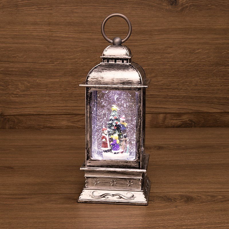 Фонарь декоративный с эффектом снегопада и подсветкой рождество, белый