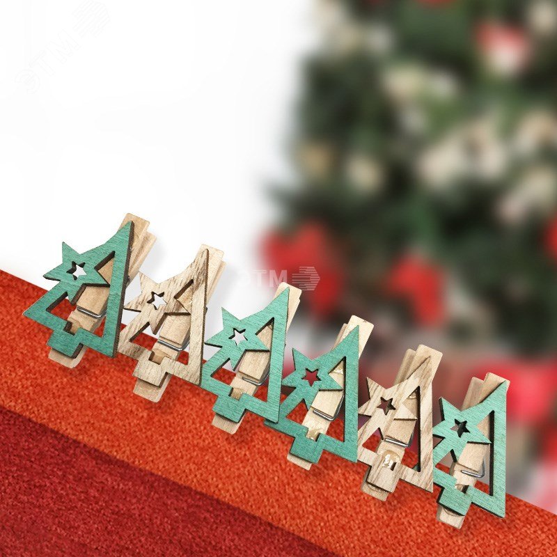 Прищепки деревянные новогодняя Ель 14,5x4,5x1,6 cм, 6 шт,