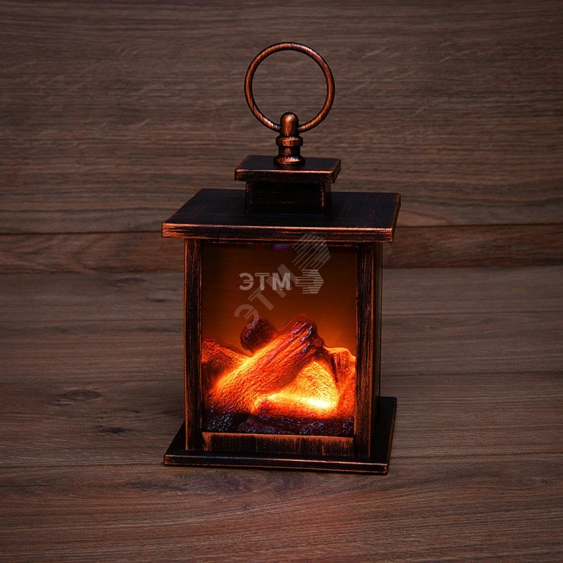 Камин светодиодный кантри с эффектом живого огня 12х12х18,5 см, батарейки 3хАА (не в комплекте)