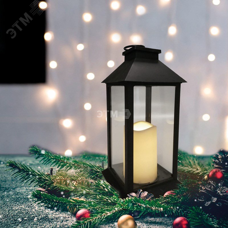 Фонарь декоративный со свечой 14x14x29 см, черный корпус, тёплый белый свечение