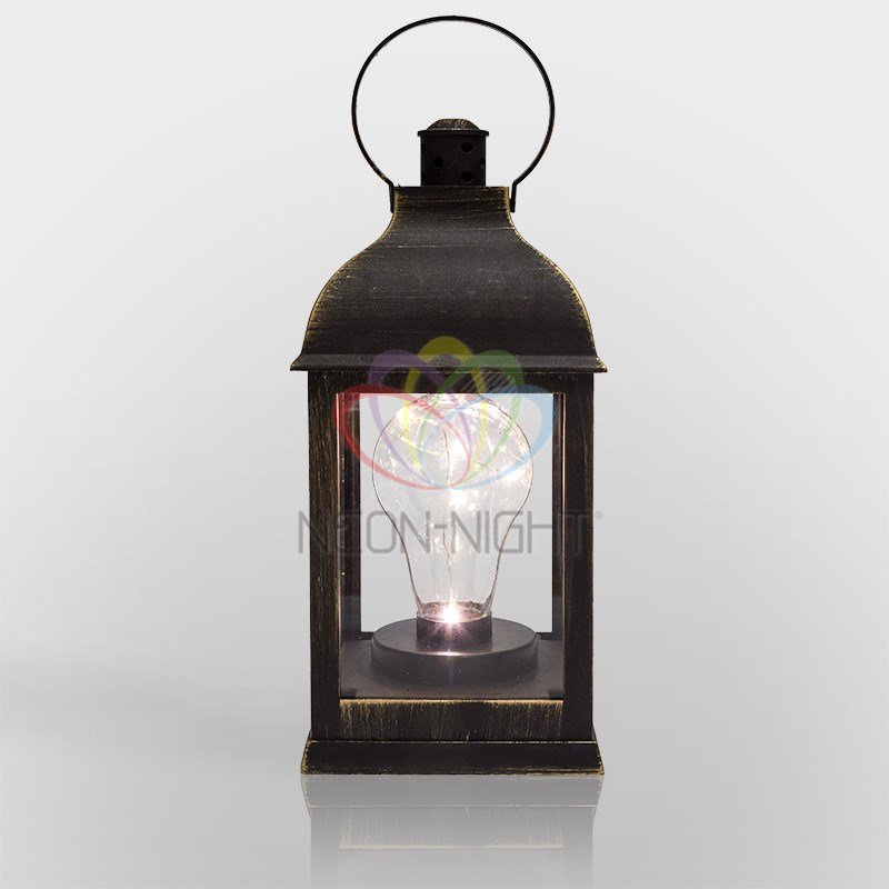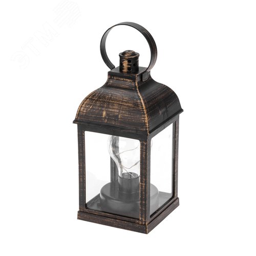 Фонарь декоративный с лампочкой, бронзовый корпус, размер 10,5х10,5х22,5 см, тёплый белый