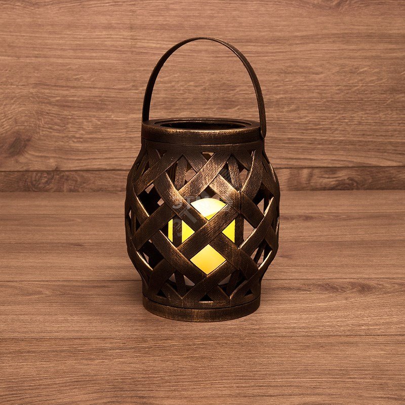 Фонарь декоративный со свечкой, плетеный корпус, бронза, размер 14х14х16,5 см, тёплый белый