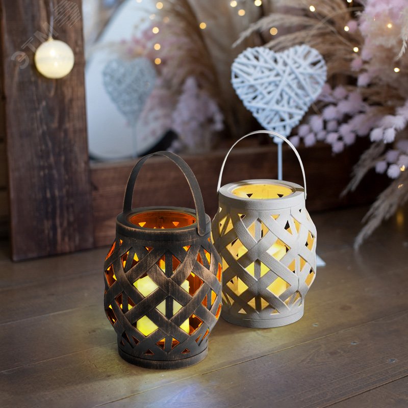 Фонарь декоративный со свечкой, плетеный корпус, белый, размер 14х14х16,5 см, тёплый белый