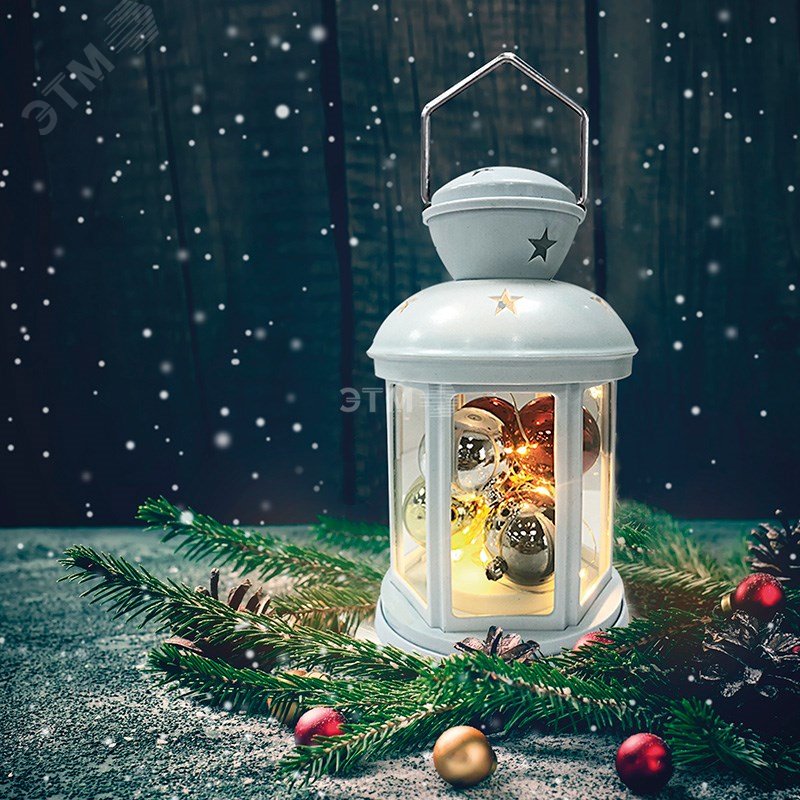 Фонарь декоративный с Шариками 12х12х20,6 см, белый корпус, тёплый белый свечение
