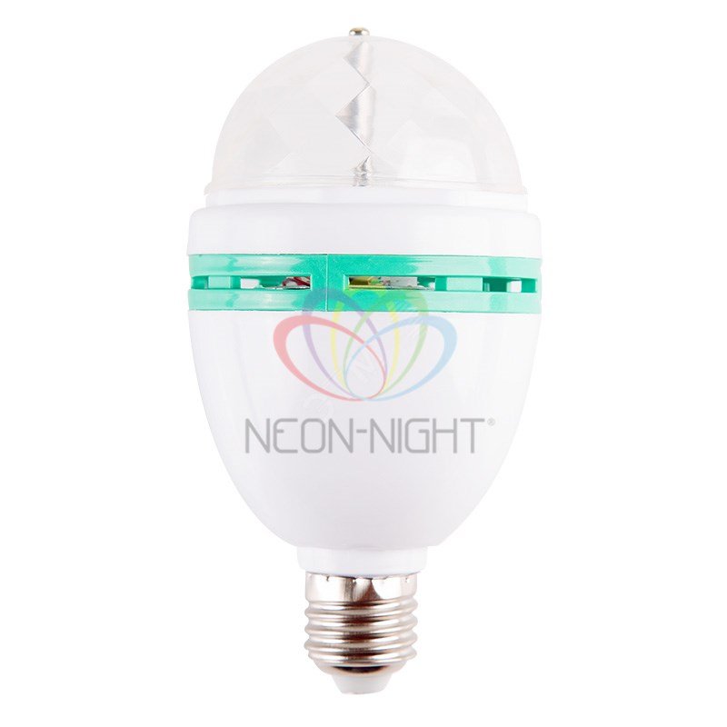 Диско-лампа с цоколем E27 — компактное устройство, которое способно создать атмосферу праздника и веселья где угодно - в квартире, на даче, в офисе или кафе. Интерьерный декор с функцией светомузыки работает от напряжения 230 Вольт - изделие можно вкрутить в подходящий по параметру патрон или установить в специальную подставку с электрическим кабелем и вилкой. Изделие выполнено в виде традиционной лампочки из белого пластика. Прозрачный купол, под которым находятся 3 диода RGB, вращается, отбрасывая разноцветные блики. Диско-лампа — это повод для вечеринки в любом месте.