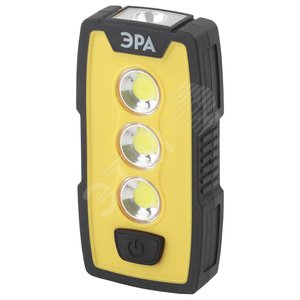 ЭРА RB-802 яркий светодиодный фонарь, который не боится воды (IP65 - защита от дождя и брызг). По периметру корпуса - прорезиненное покрытие, которое защищает устройство при возможных падениях и тряске. На лицевой стороне - 3 премиум-светодиода общей мощностью 6 Вт. Каждый из них расположен в индивидуальном гнезде - в случае повреждения одного из элементов, пользователь не останется без света. На торце - дополнительный LED-элемент мощностью 1 Вт. RB-802 можно использовать в двух режимах: направленный свет (фонарь с дальностью 20 метров) и рассеянный заливающий свет (светильник). Встроены три вида крепления к разным поверхностям - крючок, магнит и клипса. ЭРА RB-802 непрерывно работает без подзарядки в течение 4 часов.