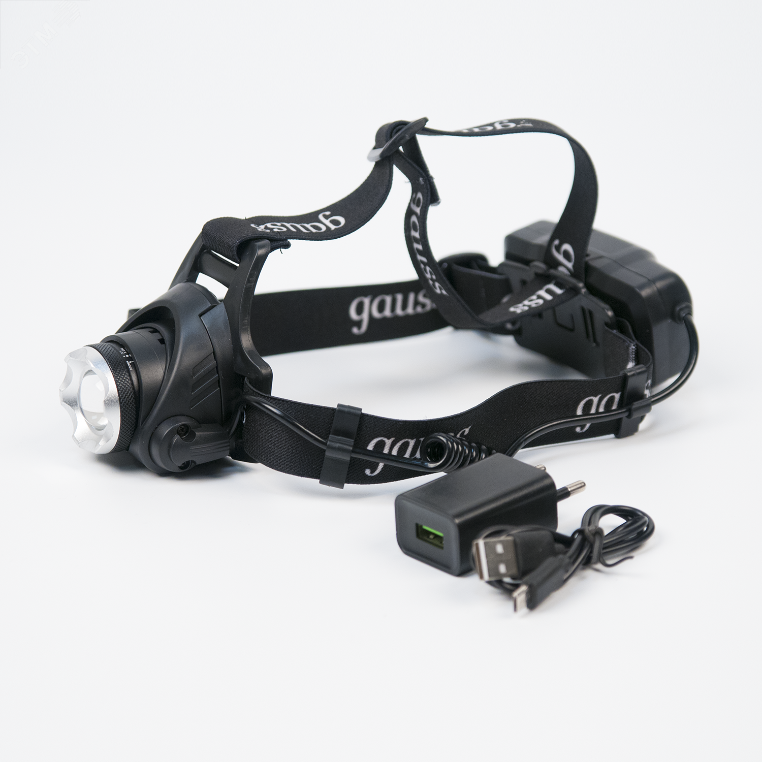 Фонарь налобный светодиодный LED 5 Вт 450 Лм модель GFL407 черный c Li-ion аккумулятором 2400 мАч Gauss