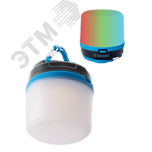 Фонарь КОСМОС (KOC602B) - компактная кемпинговая лампа с мягким, теплым светом и режимом мультиколор. Можно как поставить на стол, так и подвесить за встроенный карабин. Отдельный режим мультисвета – для отдыха и праздника. Освещает пространство вокруг себя на 360 градусов. 3 режима работы - яркий теплый свет, средний теплый свет и мультисвет. Благодаря матовому рассеивателю, можно использовать как мини-ночник на неярком режиме. Источник света - 2 Вт LED (теплый свет) + RGB LED (мультиколор). Источник питания - 3xAAA (в комплект не входят). Количество режимов - 3 (яркий теплый свет-экономичный теплый свет - мультиколор). Световой поток - 60 лм. Дистанция освещения - 8 м2. Корпус - ABS-пластик, IP54. Компактный размер - 7.2x7.2x7.0 см. Матовый рассеиватель. Складная ручка-крепление для подвешивания.