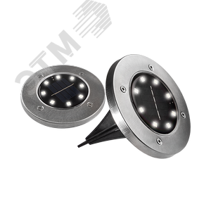 Светильник светодиодный для ландшафтного освещения садово-парковый ДВУ-0.2Вт 5000К в грунт солнечная батарей нерж. сталь компл. 2шт IP44
