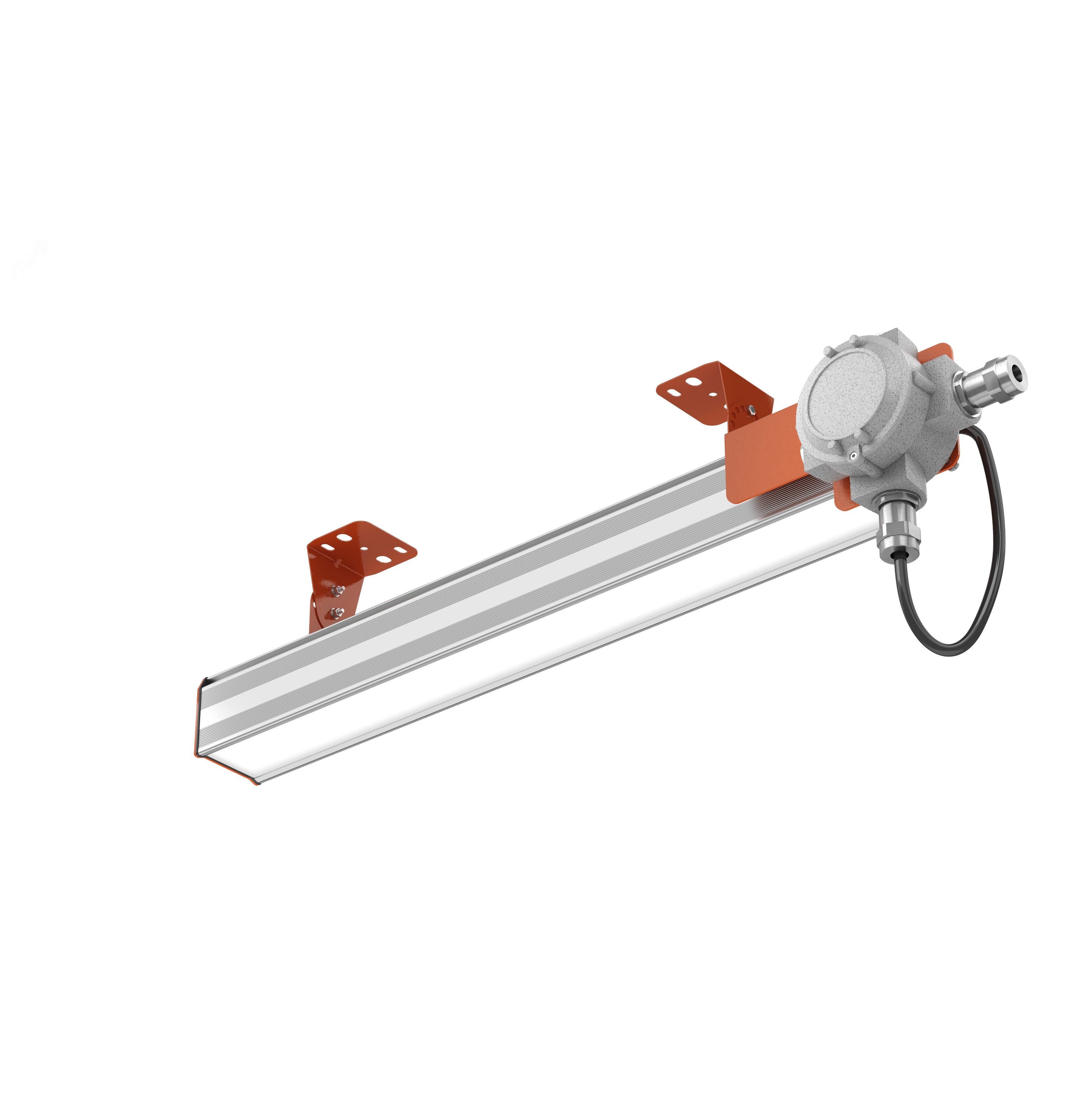 Промышленные взрывозащищенные светильники, с аварийным блоком питания, выполненные в алюминиевых корпусах с высокой степенью защиты IP65. Светильники выпускаются в модификации с со взрывозащищенной распределительной коробкой. Оптическая часть светильников полностью залита светотехническим прозрачным компаундом, источник питания изолирован при помощи компаунда. Светильники оснащаются ударопрочными качественными рассеивателями, устойчивыми к УФ излучению, с установленным съемником статического электричества. Продуманная конструкция теплоотвода гарантирует сохранение заявленных характеристик и безотказную работу светильника. Грамотная конструкция крепежного узла позволяет осуществлять подвесной (при помощи тросов или цепей) или накладной монтаж (при помощи кронштейна с регулировкой угла наклона). Регулировка угла наклона возможна в диапазоне от 0 до 90 град. Светильники могут соединяться в линию при помощи торцевого переходника.