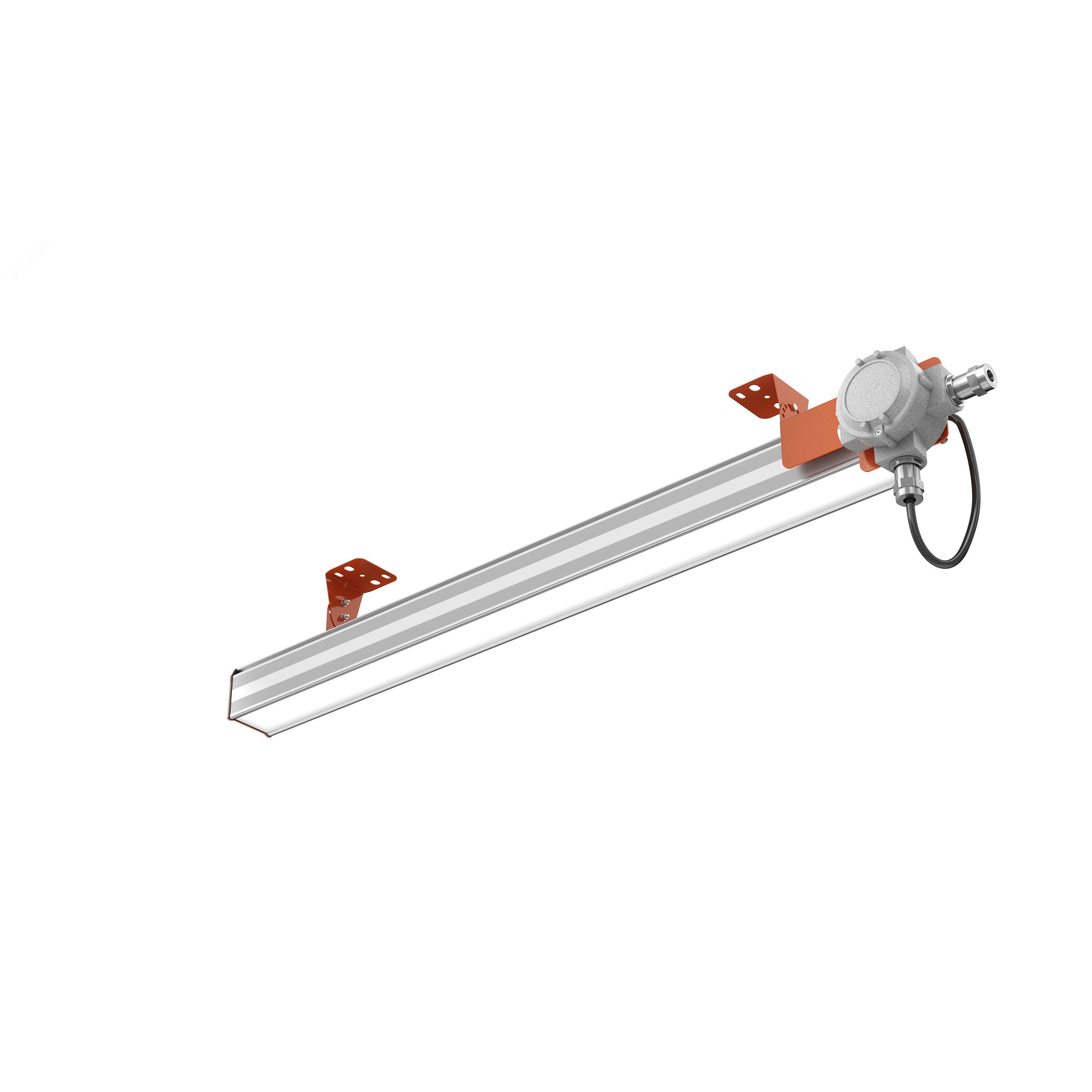 Промышленные взрывозащищенные линейные светодиодные светильники выполненные в алюминиевых корпусах с высокой степенью защиты IP65. Светильники выпускаются в модификации с со взрывозащищенной распределительной коробкой. Оптическая часть светильников полностью залита светотехническим прозрачным компаундом, источник питания изолирован при помощи компаунда. Светильники оснащаются ударопрочными качественными рассеивателями, устойчивыми к УФ излучению, с установленным съемником статического электричества. Продуманная конструкция теплоотвода гарантирует сохранение заявленных характеристик и безотказную работу светильника. Грамотная конструкция крепежного узла позволяет осуществлять подвесной (при помощи тросов или цепей) или накладной монтаж (при помощи кронштейна с регулировкой угла наклона). Регулировка угла наклона возможна в диапазоне от 0 до 90 град. Светильники могут соединяться в линию при помощи торцевого переходника.