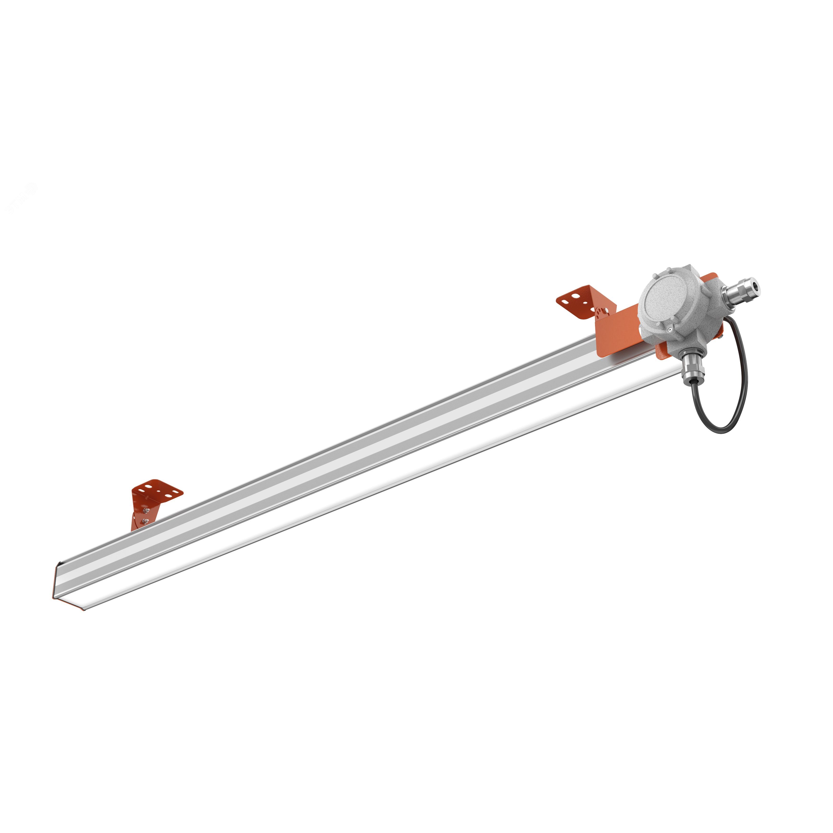 Промышленные взрывозащищенные линейные светодиодные светильники выполненные в алюминиевых корпусах с высокой степенью защиты IP65. Светильники выпускаются в модификации с со взрывозащищенной распределительной коробкой. Оптическая часть светильников полностью залита светотехническим прозрачным компаундом, источник питания изолирован при помощи компаунда. Светильники оснащаются ударопрочными качественными рассеивателями, устойчивыми к УФ излучению, с установленным съемником статического электричества. Продуманная конструкция теплоотвода гарантирует сохранение заявленных характеристик и безотказную работу светильника. Грамотная конструкция крепежного узла позволяет осуществлять подвесной (при помощи тросов или цепей) или накладной монтаж (при помощи кронштейна с регулировкой угла наклона). Регулировка угла наклона возможна в диапазоне от 0 до 90 град. Светильники могут соединяться в линию при помощи торцевого переходника.