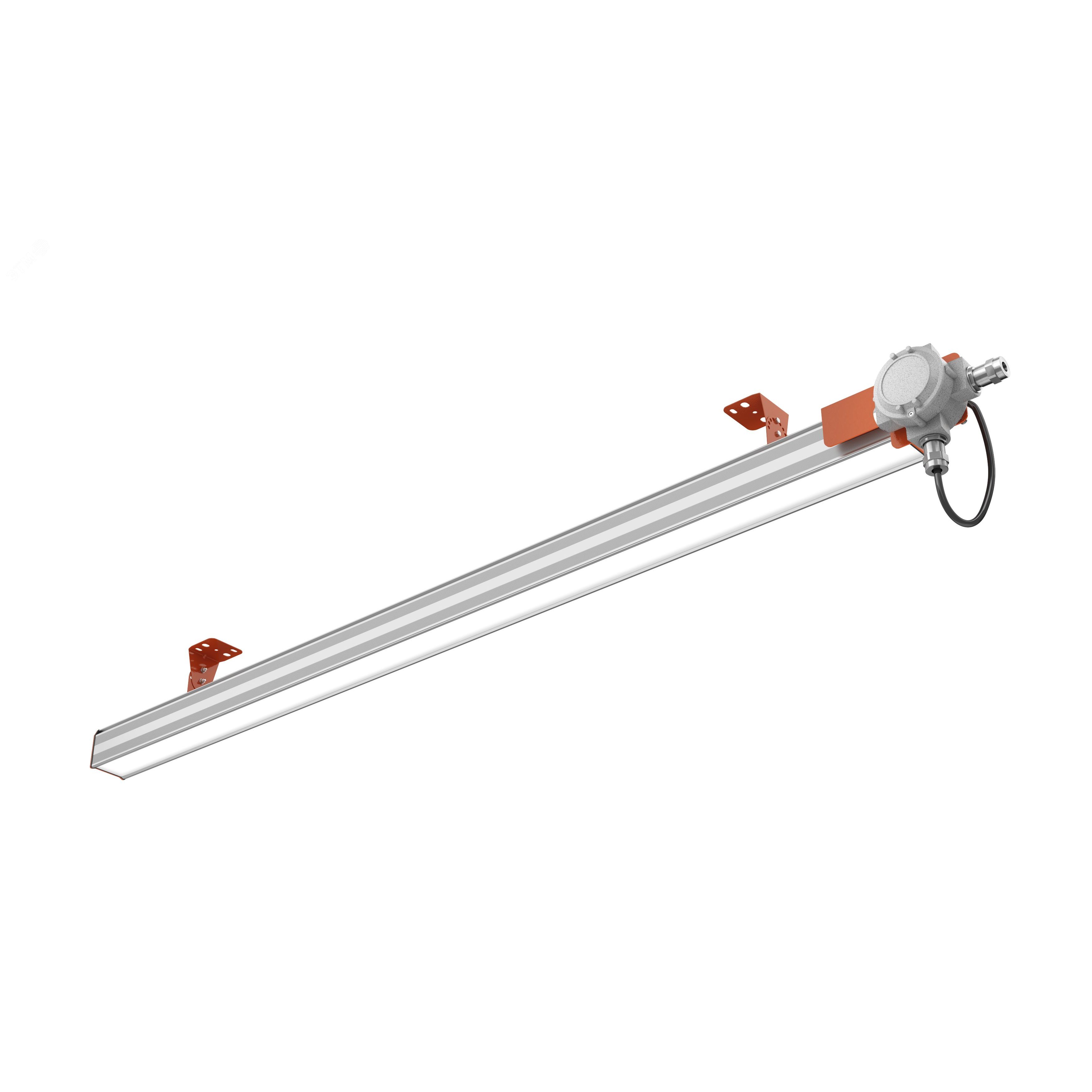 Промышленные взрывозащищенные линейные светодиодные светильники выполненные в алюминиевых корпусах с высокой степенью защиты IP65. Выпускаются в модификации с со взрывозащищенной распределительной коробкой. Оптическая часть светильников полностью залита светотехническим прозрачным компаундом, источник питания изолирован при помощи компаунда. Уличные светодиодные взрывозащищенные светильники оснащаются ударопрочными качественными рассеивателями, устойчивыми к УФ излучению, с установленным съемником статического электричества. Продуманная конструкция теплоотвода гарантирует сохранение заявленных характеристик и безотказную работу светильника. Грамотная конструкция крепежного узла позволяет осуществлять подвесной (при помощи тросов или цепей) или накладной монтаж (при помощи кронштейна с регулировкой угла наклона). Регулировка угла наклона возможна в диапазоне от 0 до 90 град. Светильники могут соединяться в линию при помощи торцевого переходника.