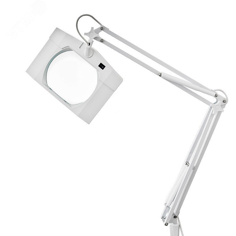 Лупа на струбцине квадратная настольная 5Х с подсветкой, белая REXANT предназначена для визуального увеличения различных мелких предметов или их фрагментов. Она используется в косметологии, в тату-салонах, при выполнении ювелирных и радиомонтажных работ, при ремонте часов, в биологии и медицине, в швейном и вышивальном деле, для организации труда людей со слабым зрением, а также для других работ, где требуется дополнительное увеличение и подсветка рабочего поля. Такая оптическая система состоит из линзы, удобного пантографического механизма и бестеневой подсветки.