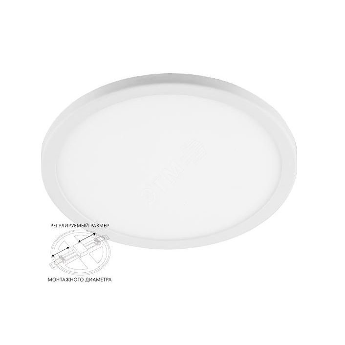 Светильник светодиодный ДВО-20w 4000К 1600Лм slim белый с регулируемым монтажным диаметром (до 210мм)