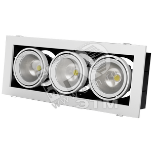 Светильник светодиодный ДВО-3x30Вт карданный 3000K белый прозрачный рассеиватель