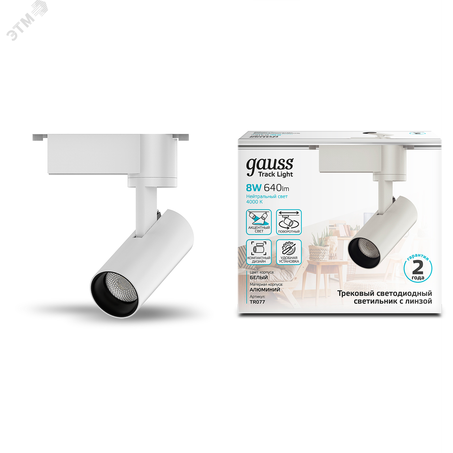 Светильник светодиодный трековый однофазный LED ДПО 8 Вт 750 Лм 4000К IP20 d45х155 мм Track Gauss