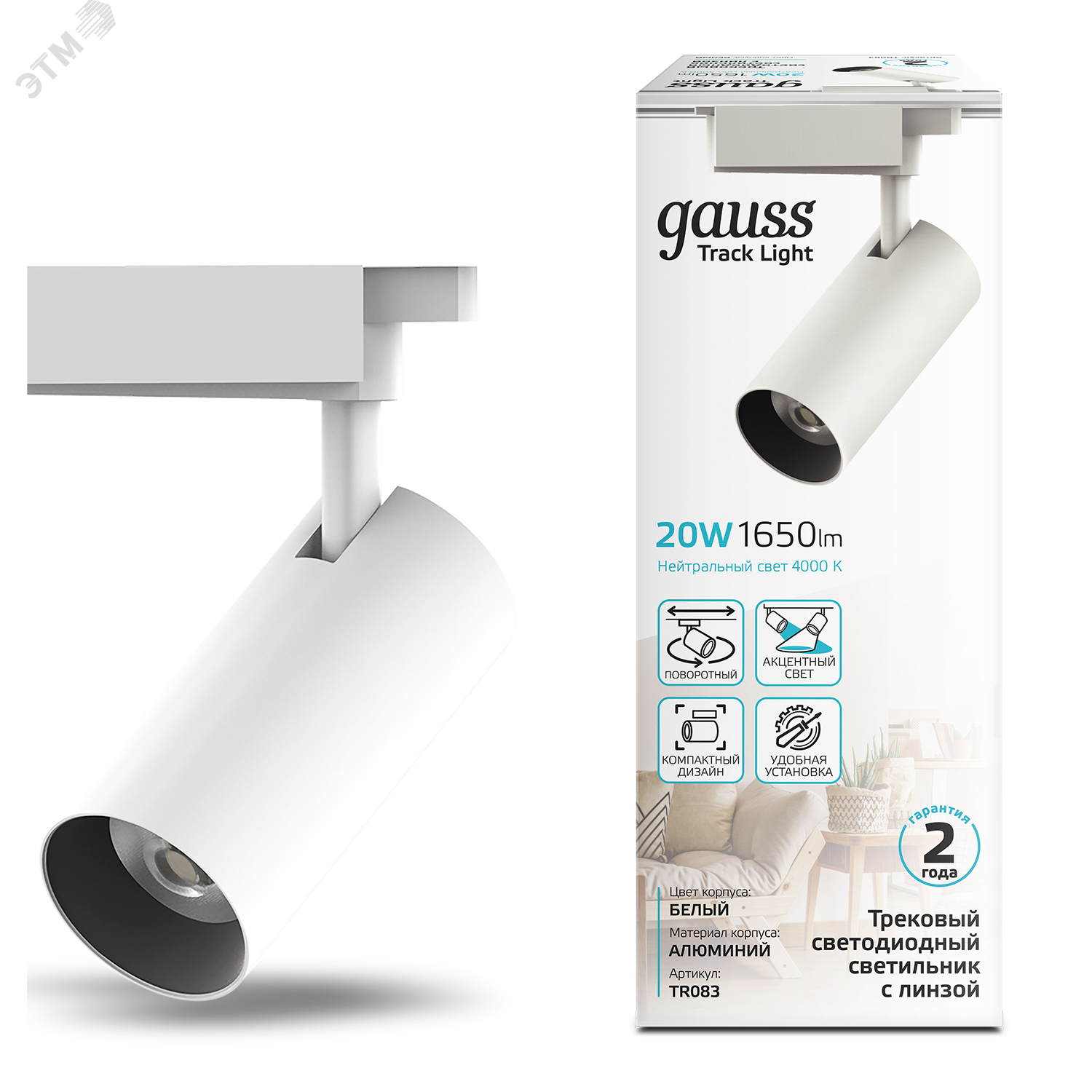 Светильник светодиодный трековый однофазный LED ДПО 20 Вт 1760 Лм 4000К IP20 d65х206 мм Track