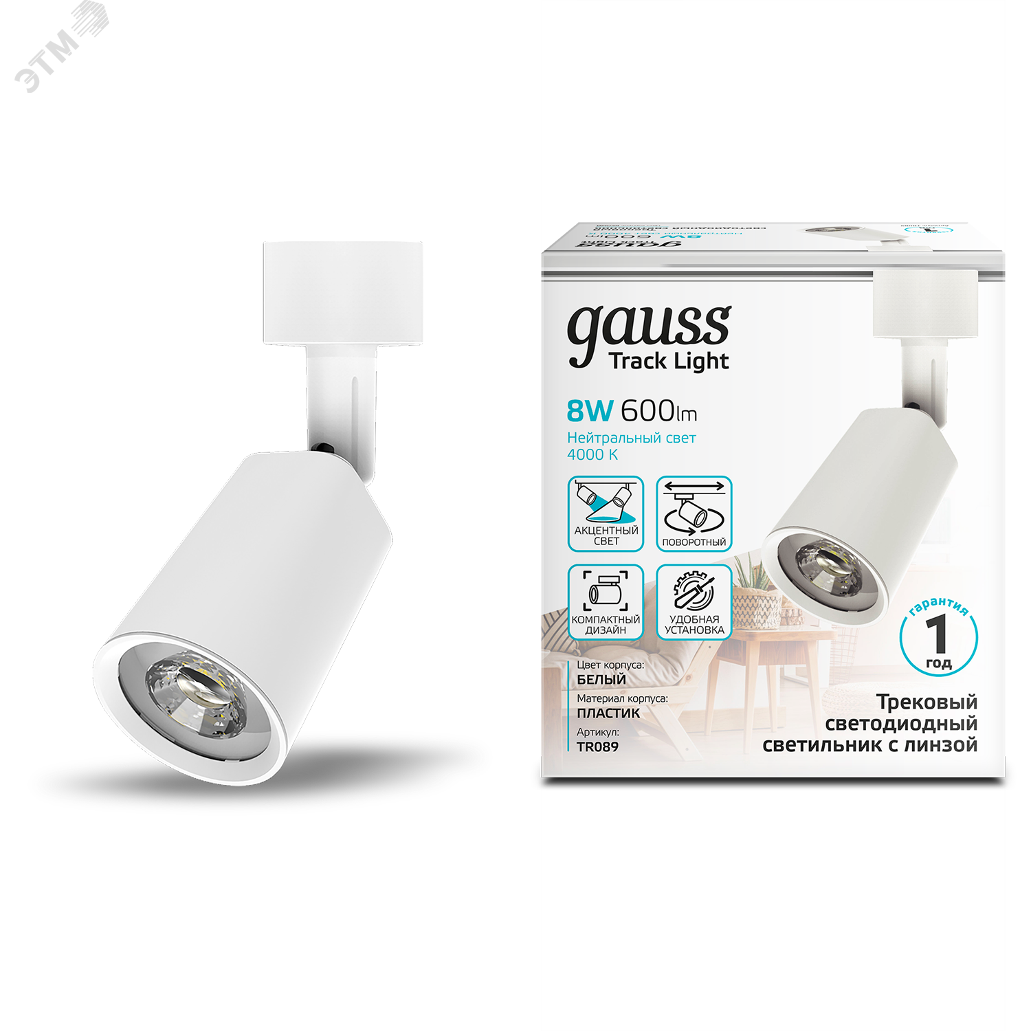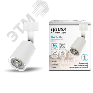 Светильник светодиодный трековый однофазный LED ДПО 8 Вт 600 Лм 4000К IP20 d59х164 мм Track Gauss