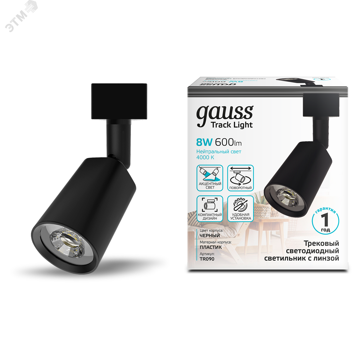 Светильник светодиодный трековый однофазный LED ДПО 8 Вт 600 Лм 4000К IP20 d59х164 мм Track Gauss