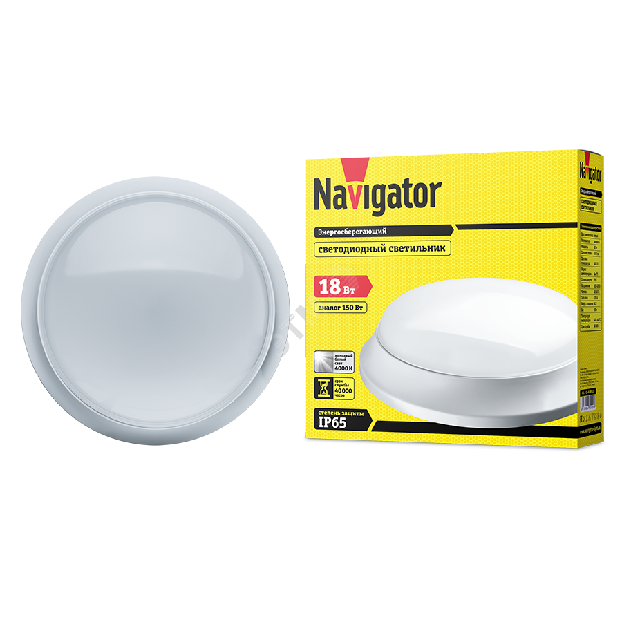 Светильник светодиодный ДБП-18w 4000К 2400Лм с блоком аварийного питания 1ч IP65 круглый пластиковый белый