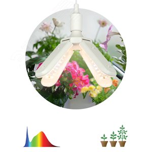 Бытовая фитолампа-трансформер полного спектра обеспечивает качественную досветку 2 кв м рассады. Поворотные лепестки позволяют быстро и без усилий изменить направление и интенсивность освещения конкретных растений. На каждом лепестке по 40 светодиодов. Габариты фитолампы: 98-393х250х100 мм. Фотонный поток: 54 мкмоль/с. Наличие инфракрасных светодиодов предотвращает вытягивание рассады. LED-элементы размещены на алюминиевых платах. Каждая плата равномерно распределяет тепло, светодиоды не перегреваются и светят гарантированно 30 000 часов. Прочный негорючий корпус базового белого цвета. Блок питания оснащён варистором, который защищает лампу от высокочастотных помех в сети. Рекомендованная высота от лампы до листьев от 15 до 75 см. За счет применения полного спектра лампа универсальна и подходит для любых видов и сортов растений в т.ч. на стадии роста.