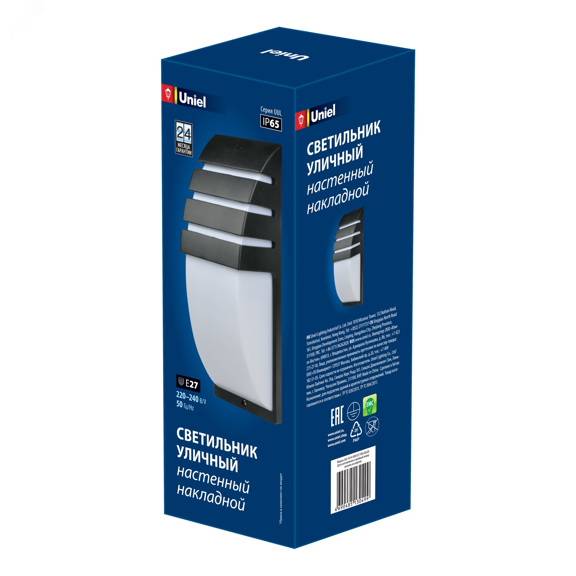 Светильник уличный, под лампу Е27. Архитектурный накладной. Корпус черный. TM . UUL-S41A 40W/E27 IP65 BLACK