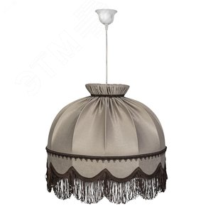 ПОДВЕСНОЙ СВЕТИЛЬНИК С ТКАНЕВЫМ АБАЖУРОМ РЕТРО — универсальное решение для гостиной, спальни или кухни. ГАБАРИТЫ. Общая высота – 68 см, высота абажура – 37 см, верхний диаметр – 18 см, нижний диаметр – 49 см. АБАЖУР изготовлен из ткани софт. Ворсистая с лицевой стороны и гладкая с изнанки, с деликатным блеском, она хорошо ложится в складки и драпировки, прекрасно подходит для оформления интерьера. Цвет ткани – капучино, благородный оттенок. Абажур исполнен в стиле ретро и декорирован контрастной бахромой. Светильник смотрится элегантно в дневное время, а в вечернее дарит красивый, мягкий свет, который преображает пространство вокруг, делает его по-домашнему уютным. КАРКАС АБАЖУРА изготовлен из проволоки d-4 мм, что придает стабильность и прочность, но дополнительно не утяжеляет светильник.