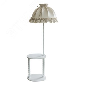НЮША — ИДЕАЛЬНЫЙ ТОРШЕР для комнаты Вашего малыша, милый, удобный и максимально безопасный! АБАЖУР с нежными и несколько игривыми рюшами отшит из прочной, износостойкой, гипоаллергенной и воздухопроницаемой ткани габардин бежевого цвета. Крой абажура легко снимается с каркаса, его можно стирать в ручном режиме при 30 градусах. Абажур мягко рассеивает свет. Даже глубокой ночью торшер Нюша деликатно осветит детскую, не ослепит Вас и не испугает Вашего малыша. Светильник со столиком удобно поставить рядом с кроваткой, все необходимое будет у Вас под рукой (соска, бутылочка, салфетки или любимая игрушка крохи). ГАБАРИТЫ – 157*58*49 см, столик овал – 30*40 см. СТОЛИК-ОСНОВАНИЕ – из износо- и влагостойкого ЛДСП белого цвета. Изящная витая СТОЙКА из стали также окрашена в белый цвет.