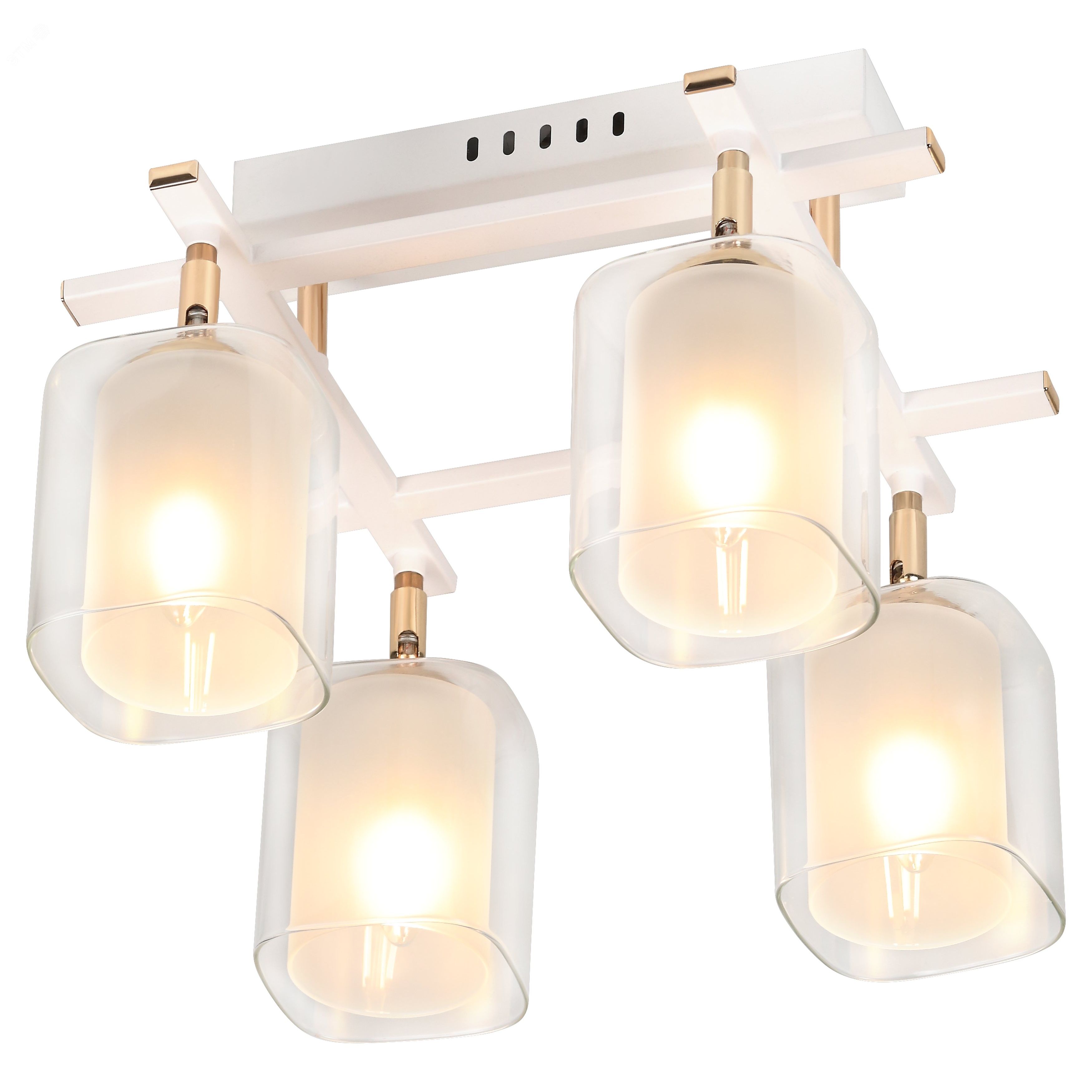 "Люстры Rivoli Helga созданы итальянскими дизайнерами как универсальный способ качественно осветить жилую комнату и преобразить пространство. Эти красивые и светлые люстры потолочные имеют ""изюминку"" - двойные плафоны. Внутренняя часть каждого плафона люстры Helga изготовлена из матового стекла, а внешняя из прозрачного. Это придает данным современным люстрам интересный внешний вид и делает их свет более мягким и уютным.Металлический корпус люстр на потолок Helga имеет выверенные геометричные формы и окрашен в базовый белый цвет. Оживляют сдержанность оформления золотистые декоративные элементы. Такой дизайн позволяет применять эту модель с 4 плафонами (арт. 3100-304) в самых разных интерьерах модерн, сканди, минимализм, классика. Серия дополнена люстрами с 2 плафонами (арт. 3100-302) и 6 плафонами (арт. 3100-306)."