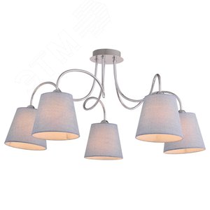 Rivoli Evelyn - коллекция, в которою входят люстры потолочные итальянского дизайна. Evelyn - большие люстры в гостиную, создающие много света и атмосферу уюта. Люстры Rivoli Evelyn на потолок средней высоты имеют классические тканевые плафоны и металлическую арматуру с оригинальными изгибами. Ткань плафонов - специальная абажурная. Она отлично пропускает свет, при этом отличается повышенной прочностью, не собирает пыль, устойчива к загрязнениям. Для европейской коллекции люстр Evelyn Rivoli выбраны светлые оттенки - белый, серебристый хром. Люстра потолочная Evelyn с 5 плафонами из абажурной ткани освещает 15 м2. Классическая люстра - прекрасный вариант люстры в спальню, люстры в детскую. Спокойные цвета и креативный подход к традициям делают люстры Rivoli Evelyn удачной покупкой для любого интерьера - как классического, так и современного.