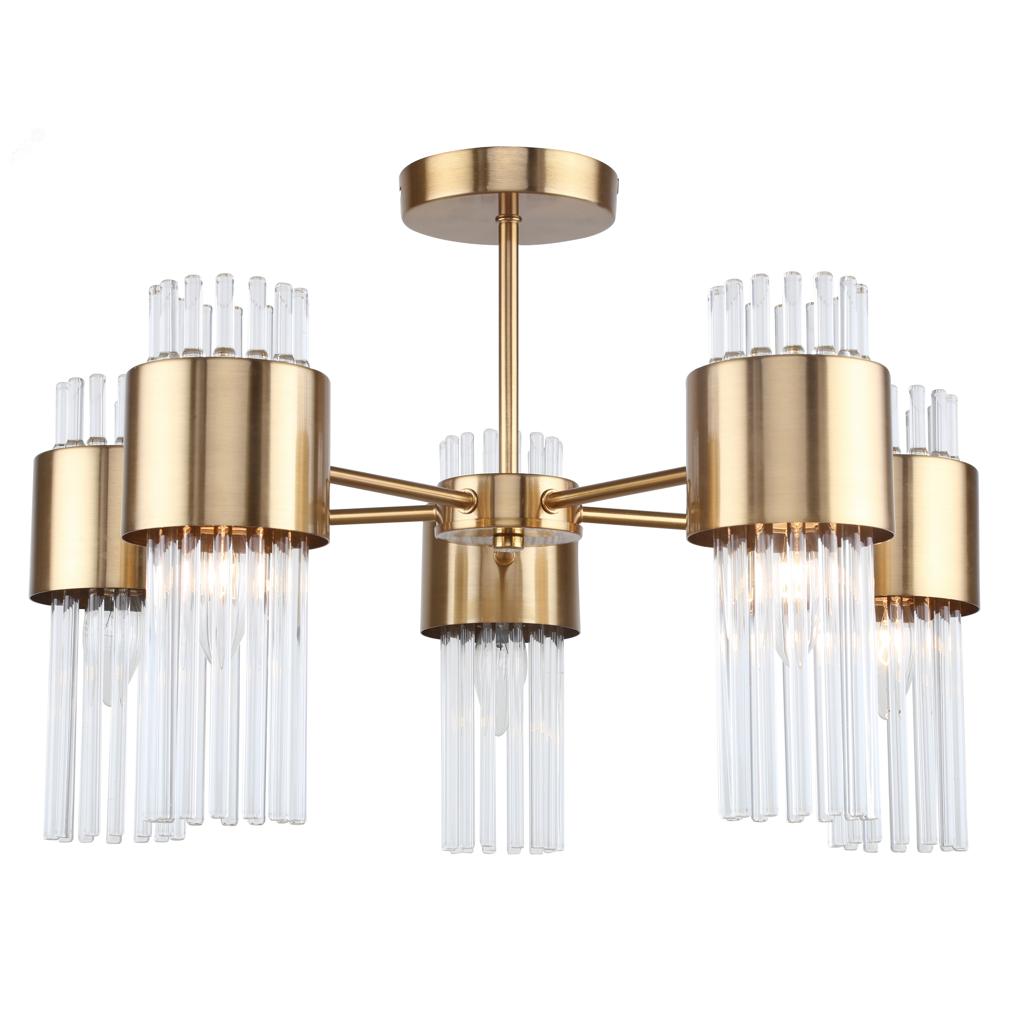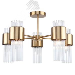 5-рожковая люстра на штанге в цвете французское золото, с трубчатыми стеклянными плафонами. Люстра потолочная применяется с 5 лампами Е14 мощностью 40 Вт, освещает площадь до 15 м2. Люстра с цилиндрическими плафонами из стекла будет удачно смотреться в гостиной, в спальне, на кухне, в кабинете, в загородном доме. Люстры и светильники коллекции Rivoli Donna подходят для оформления пространств сегмента horeca – рестораны, кафе, гостиницы. Эти люстры потолочные заказывают в интерьеры театров, концертных залов, фойе общественных пространств.