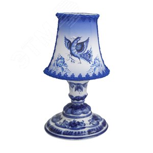 НАСТОЛЬНЫЙ СВЕТИЛЬНИК, декорированный в традиционной технике Гжель, придется по вкусу коллекционерам, любителям народных промыслов и ценителям роскоши. Он станет украшением Вашего дома, а каждый вечер будет творить маленькое чудо – прогонять сумерки, наполняя пространство уютным светом. ГАБАРИТЫ. Высота – 29 см, нижний диаметр абажура – 16 см, диаметр основания – 16 см. ОСНОВАНИЕ из фарфора исключительного качества, расписано кобальтовой краской вручную мастерами Гжельского завода. Узор каждой фарфоровой детали уникален, поэтому рисунок на изделии может отличаться от представленного на фото. АБАЖУР – из ткани с фотопечатью рисунка Гжель.