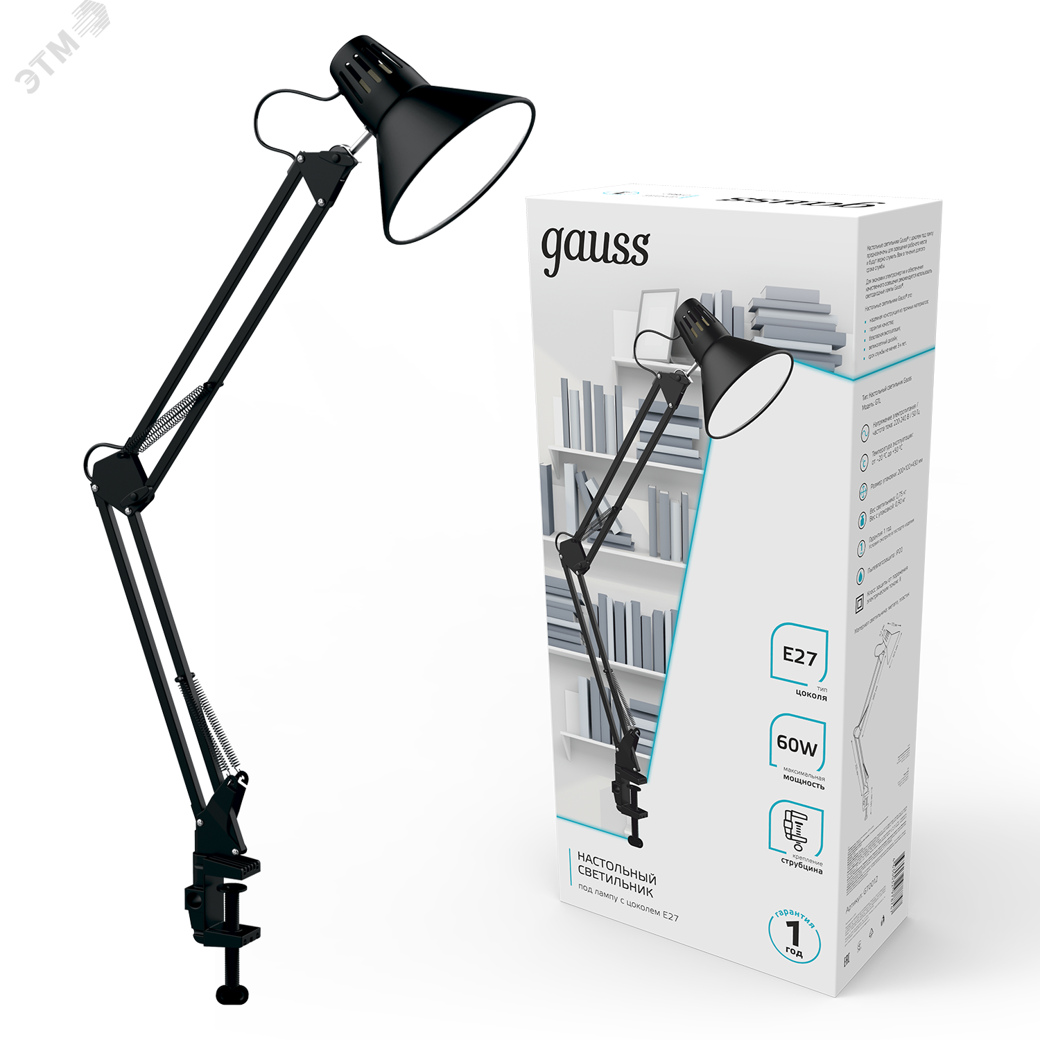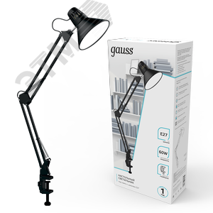 Светильник настольный под лампу E27 х60 Вт 220-240В IP20 480х165 мм Черный струбцина GTL Gauss