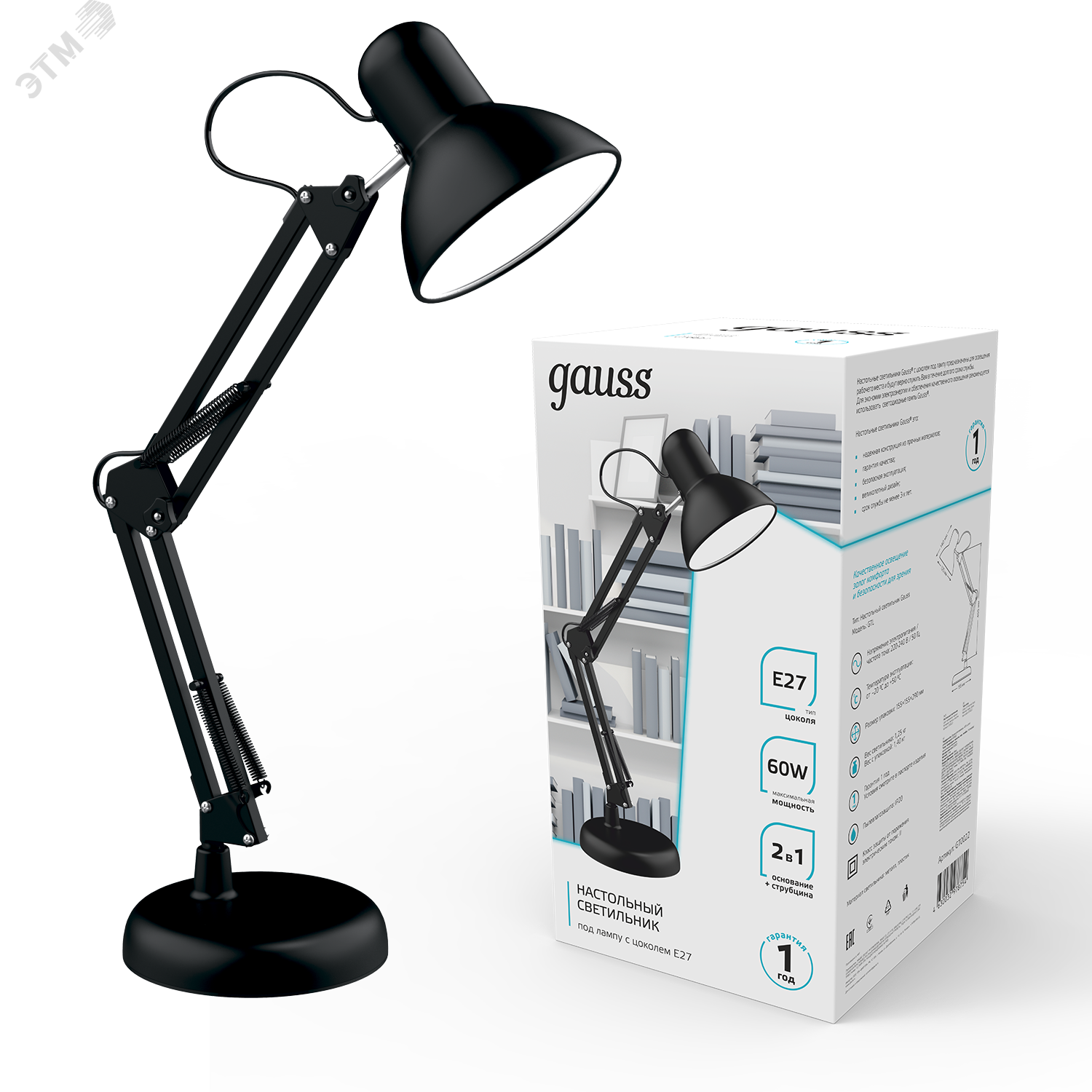 Светильник настольный под лампу E27 х60 Вт 220-240В IP20 300х150 мм черный струбцина GTL