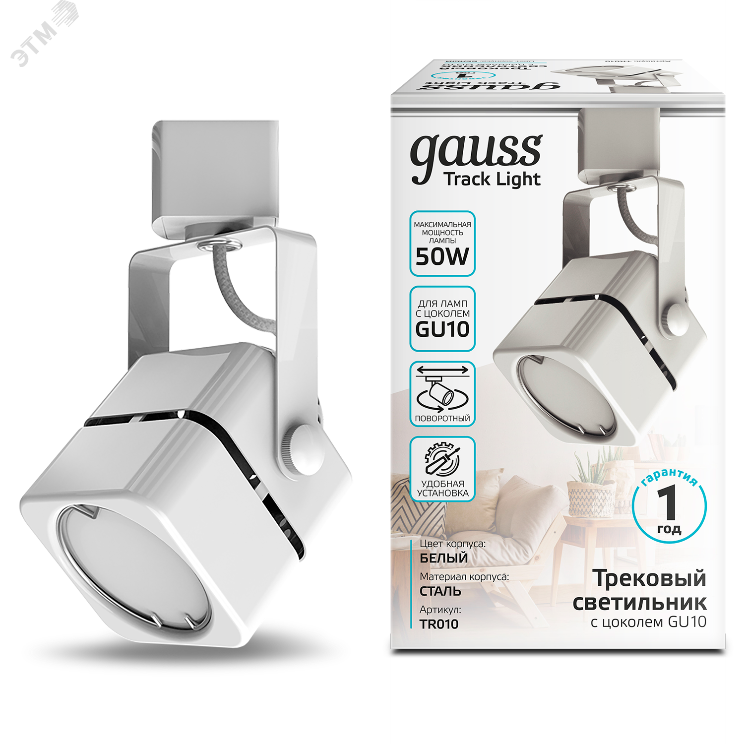 Светильник трековый однофазный под лампу GU10 1х35 Вт 180-240В IP20 80х60х140 мм белый Track