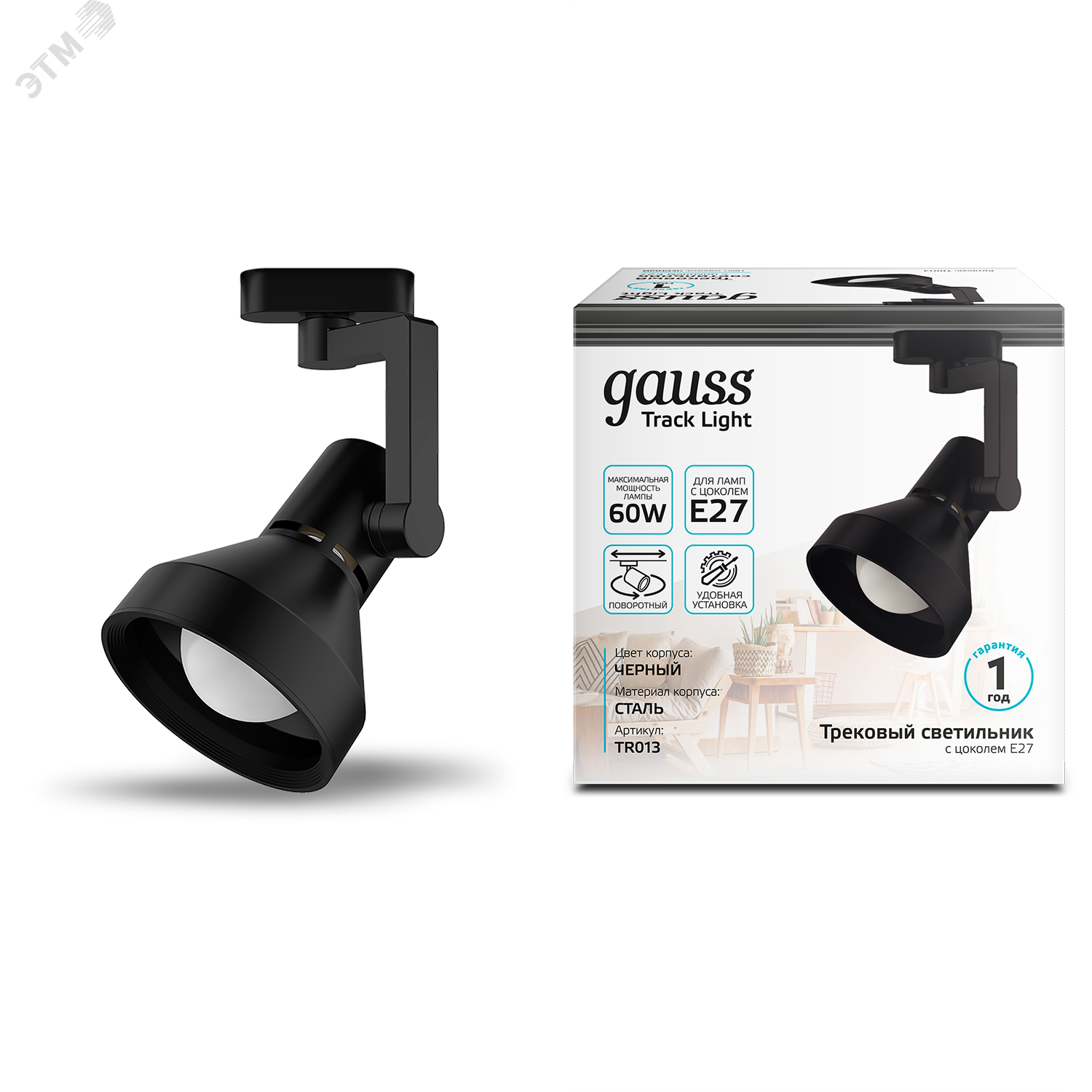 Светильник трековый однофазный под лампу E27 1х60 Вт 180-240В IP20 150х112х155 мм черный Track