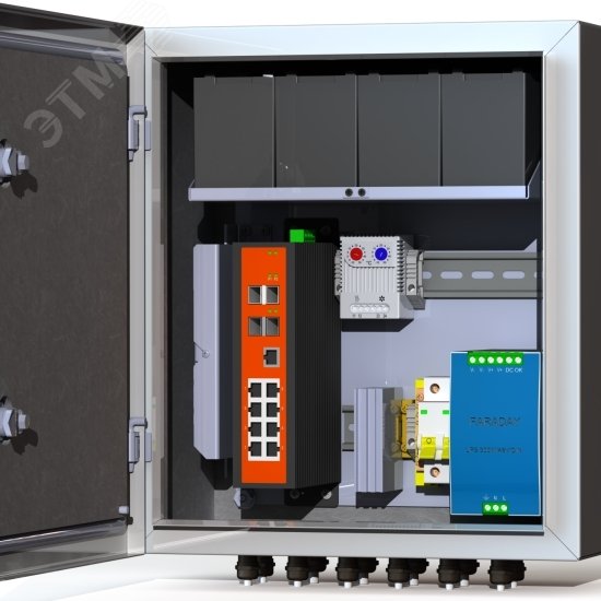Узел коммутационный 8хPoE, 2хSFP, 4хSC, АКБ 4х12В, 7А/ч, IP66, 350х400х210 мм