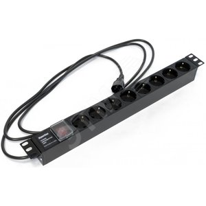 Блок розеток для 19 шкафов. горизонтальный. с выключателем с подсветкой. 8 розеток Schuko (10A). 250В. кабель питания 3х1.0мм2. длина 2.5 м. с вилкой