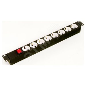 Блок силовых розеток 19дюйм без шнура с выключателем, 8 розеток, цвет черный