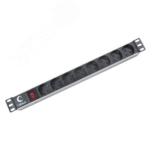 Блок евророзеток для 19D шкафов. горизонтальный. 8 розеток. 10 A. выключатель. гнездо под шнур. алюминиевый корпус