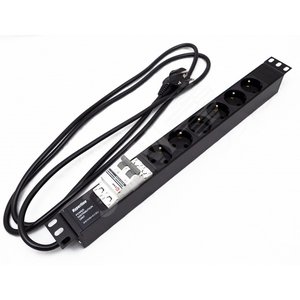Блок розеток для 19' шкафов. горизонтальный. 6 розеток Schuko. автоматический выключатель. кабель питания 2.5м (3х1.5мм2) с вилкой Schuko 16A. 250В. 4