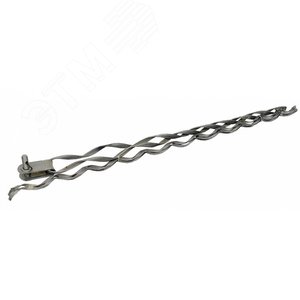 Предназначен для крепления оптических самонесущих кабелей на опорах освещения, опорах ВЛ связи, контактных сетей железных дорог, зданиях и сооружениях. Зажим состоит из силовой части, которая представляет собой U-образную прядь из нескольких спиральных проволок, скрепленных между собой специальным раствором, с внутренней стороны которых нанесет абразив. Протектор для дополнительной защиты кабеля представляет собой комплект отдельных спиралей или склеенных прядей, навиваемых на поверхность провода. Изготавливается в климатическом исполнении категории УХЛ 1.