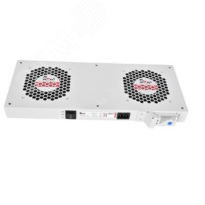 Модуль вентиляторный R-FAN-2Т предназначен для отвода или нагнетания воздуха шкафы ЦМО и Elbox что способствует охлаждению установленного оборудования. Используется для установки в подготовленное отверстие (крыша/дно) в настенных и напольных телекоммуникационных шкафах (ШРН, ШРН-Э, ШРН-М, ШРН-С, ШТК-М, ШТК-С, ШТВ и EMS). Модуль вентиляторный с двумя односкоростными, осевыми вентиляторами с изменением направления потока (направление потока указан на этикетке стрелкой) и терморегулятором. Порог включения задается в пределах от 0 до +60?С, порог выключения - понижение температуры на 7?С от заданной. Вход подключения питания разъем IEC 320 C14.