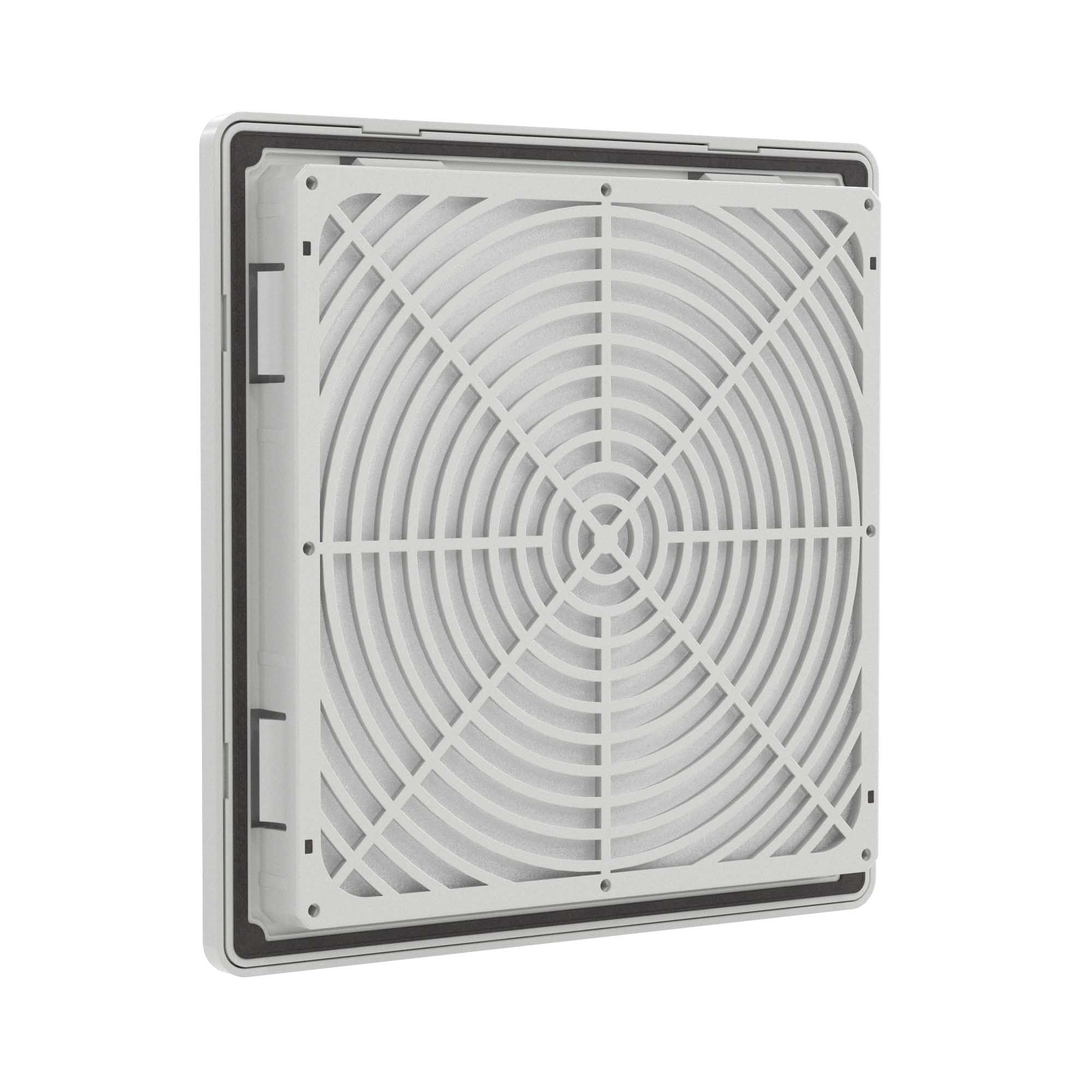 Вентиляционные решетки RF изготовлены в России. Они обладают высоким качеством и надежностью, могут применяться даже в тяжелых условиях эксплуатации. Изготовлены из устойчивого к УФ и не поддерживающего горение АБС–пластика и поликарбоната. Возможна установка на улице без навеса. Степень защиты IP54, опционально повышение до IP56. Применяются для создания пассивной вентиляции или в сочетании с настенными или потолочными вентиляторами. Монтаж осуществляется без использования инструмента при помощи защелок (опционально можно зафиксировать винтами, например, при вибрационных нагрузках). В комплекте - воздушный фильтр с возможностью быстрой замены без инструмента. Внешние размеры 252х252 мм, размер монтажного выреза 224х224 мм. Цвет - светло-серый, RAL 7035.