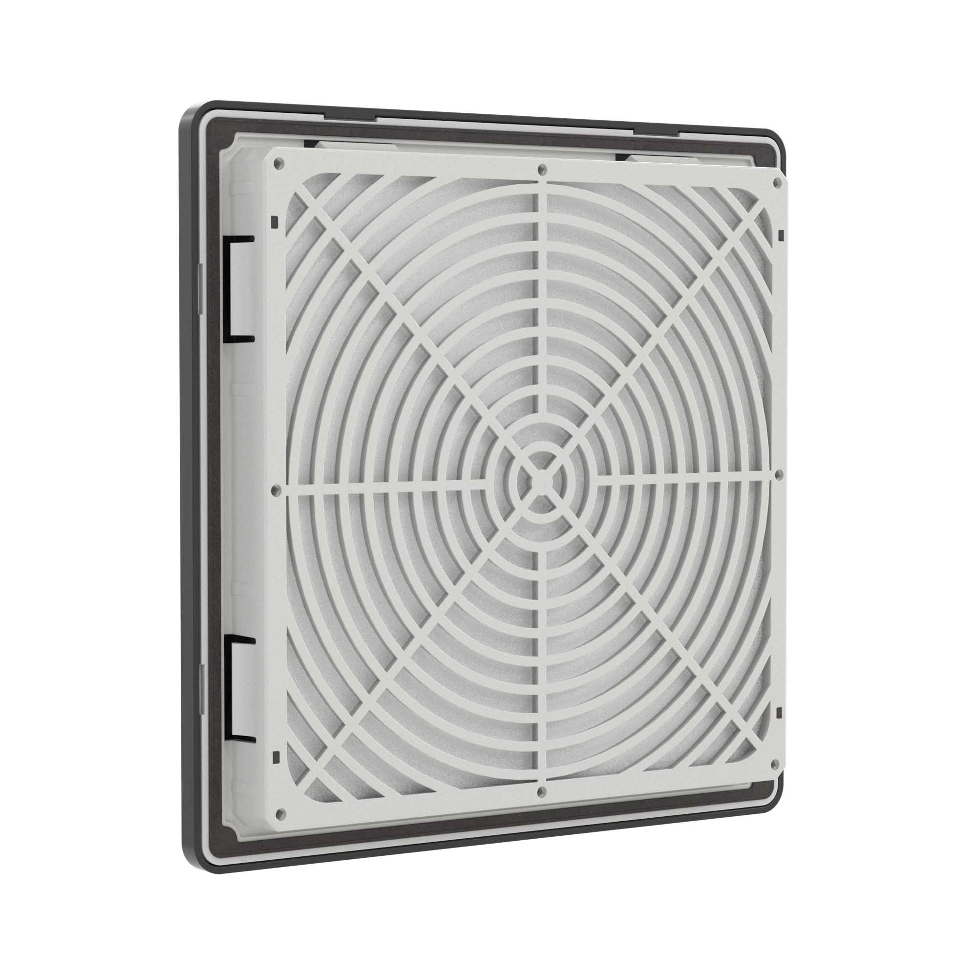 Вентиляционные решетки RF изготовлены в России. Они обладают высоким качеством и надежностью, могут применяться даже в тяжелых условиях эксплуатации. Изготовлены из устойчивого к УФ и не поддерживающего горение АБС–пластика и поликарбоната. Возможна установка на улице без навеса. Степень защиты IP54, опционально повышение до IP56. Применяются для создания пассивной вентиляции или в сочетании с настенными или потолочными вентиляторами. Монтаж осуществляется без использования инструмента при помощи защелок (опционально можно зафиксировать винтами, например, при вибрационных нагрузках). В комплекте - воздушный фильтр с возможностью быстрой замены без инструмента. Внешние размеры 252х252 мм, размер монтажного выреза 224х224 мм. Цвет - черный, RAL 9005.