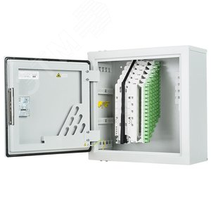 Оптический распределительный шкаф (ОРШ) серии ШКОН-КПВ предназначен для использования в многоквартирных жилых домах при строительстве городских сетей абонентского доступа по технологии FTTH (PON) - 'волокно-в-квартиру'. Антивандальное пылевлагозащищенное исполнение шкафа позволяет размещать его непосредственно в подъезде, в подвале, техническом этаже или на чердаке. Конструктивной особенностью кросса является то, что монтаж и кросс-коммутация ОВ осуществляется в откидных кроссовых модулях, объединенных в кроссовый блок. Подобная компоновка кроссового поля является оригинальной разработкой ССД и получила название - система 'книжка'. Откидные кроссовые модули позволили значительно уменьшить габариты шкафа, особенно его глубину. При этом общее количество портов увеличилось.